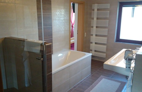 Living room with couch, coffee table, fireplace and TV, kitchen with dining table, dishwasher, ceramic hob, stove with oven, microwave and fridge incl. Freezer, toaster, coffee machine and kettle; Max. 3 separate bedrooms with TV; Terrace with table / chairs; Conservatory with dining table; Bathroom with 2 toilets, 2 sinks and shower and bath; Parking for max 2 cars in front of the house, more free parking about 200m away at the lookout tower.