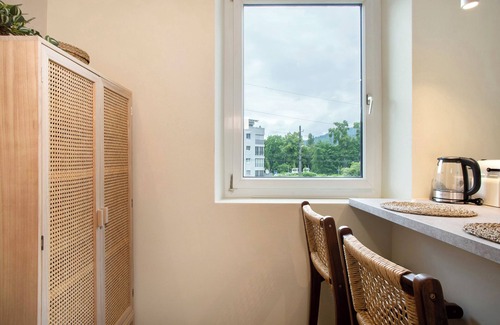 The apartment has a cozy bedroom with a comfortable bed, a well-equipped kitchen with dishwasher and a modern bathroom. This apartment is perfect for a romantic stay or a relaxing getaway.
