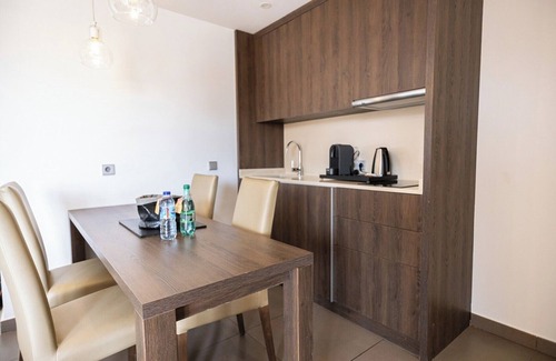 There is a spacious living room with air conditioning hot/cold, cozy scarf sofa. You will also find everything you need in the open kitchen with dining table. From the fridge, microwave and ceramic hob to the coffee machine (filter or Nespresso machine), toaster and kettle.