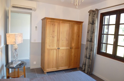 A large air-conditioned apartment (45m2) on the ground floor for 5 people and composed of 2 bedrooms, 1 kitchen, 1 shower room, 1 toilet, a large shaded terrace. The apartment is located in a very quiet small residence of 6 apartments, located on a plot of 2000 m². It is 300 meters from the village center where there are bars, restaurants, mini-markets, tobacconists, bakery, post office and is 500 meters from the beach.