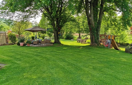 We offer 4 vacation apartments in a central yet quiet location, named after castle ruins in our region, all of which are comfortably furnished and have a separate bedroom. The respective terrace or balcony offers a view of our large garden with old shady trees, situated on a stream in the middle of the countryside.