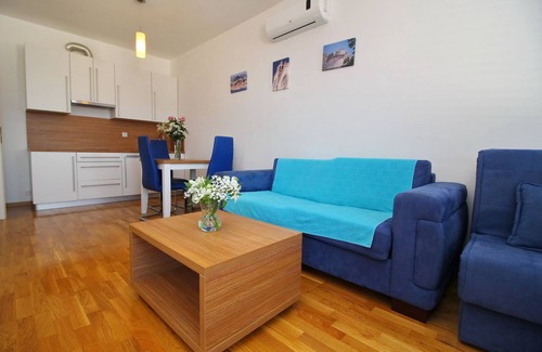 This comfort one bedroom apartment features free WiFi, air-conditioning, well-equipped kitchen with dining area, an SAT/flat-screen TV living room with sofa and a private bathroom. Private bathroom comes with shower and a hair dryer. It will also provide you with a lovely furnished balcony with a sea view. This one bedroom apartment can comfortably accommodate up to 5 persons.