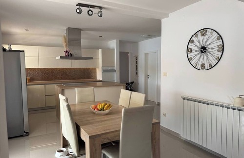 Escape to our stunning 4-bedroom apartment in Kampor, Croatia, perfectly situated for a relaxing seaside getaway. This beautifully appointed property boasts 110m² of living space, spread across two floors, with a private entrance and ample natural light.