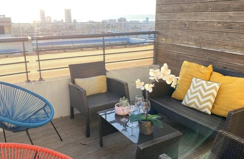 Apt rooftop with seaview is located in La Belle de Mai. Apt rooftop with seaview provides accommodation, featuring Parking, TV, Balcony/Terrace, among other amenities. This Apartment features Parking, TV, Balcony/Terrace, to make your stay a comfortable one.