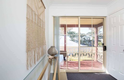 Modern 2-bedroom townhouse steps from Shark Net Beach, Huskisson. Ocean views from balcony, fully equipped kitchen. Walk to cafes & shops.