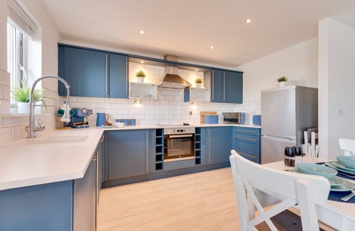 Kitchen and utilities: Modern fully-equipped kitchen with oven, hob & grill, fridge/freezer, coffee machine, microwave, washing machine, tumble dryer, dishwasher and dining area for up to 4 people.