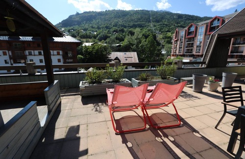Located on the third and last floor of a residence at the foot of the ski lifts of Briançon, rooftop apartment of architect in duplex of 116m ², including an entrance with storage, a fitted and equipped kitchen separate, a bright dining room with access to the terrace of 128m² facing south-west, a pantry with washing machine, a voluminous living room with fireplace, 3 sofas including a convertible RAPIDO, two bedrooms with double bed, a bathroom with bathtub, separate toilet. Upstairs, a mezzanine with an office area, a bedroom with access to a bathroom with bath and toilet.