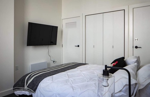The Tancook Loft is located on the second floor at B2 Lofts. It is a fully-equipped apartment-style accommodation with two queen beds, modern European kitchen appliances, a full bathroom with walk-in shower, as well as a comfortable living space with a Smart TV. It features stunning architectural design including a cathedral ceiling with steel trusses, hardwood floors, generous multi-pane windows, contemporary leather furniture, a sprinkler system and spectacular views overlooking Lunenburg's historic townscape. Luxurious linens and Beautyrest mattresses add to the comfort of your stay.Come visit our amazing loft-style accommodations in beautiful Lunenburg, a UNESCO World District at the South Shore of Nova Scotia. Our lofts have been designed by internationally acclaimed MacKay-Lyons Sweetapple Architects and offer you all that you need to have a memorable stay.