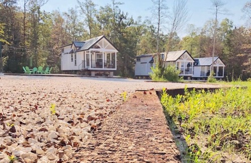 The tiny house sits on the property with 2 other tiny house rentals and a barn that is also available for rent as a venue. All 3 houses are staggered to give each house privacy and a view of the pond. We are right off the main road (HWY 69) but toward the back of the property away from the road. When you arrive, you can park along side of your unit or in the common area.