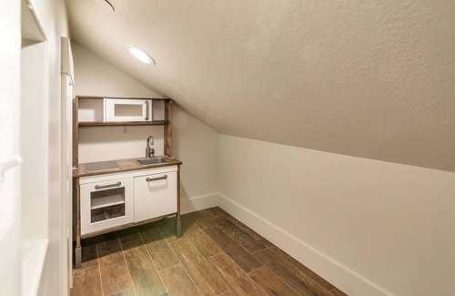 Your little ones will love the secret passageways connecting playhouses in the eaves!