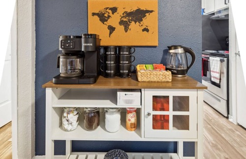 ✔ Fully stocked coffee and tea station