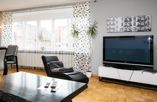 Our apartment is spacious and contains everything you are used to from home. The equipment is very high quality with washing machine, 50 'TV, DVD, stereo, Win-PC and WiFi connection. The kitchen has a dishwasher, Tassimo machine and a side by side refrigerator. Also belongs to the apartment, together with our appt. No. 6, a loggia. Our house is located in the center of the municipality of Mittelkirchen. On the opposite side of the road is the river Lühe, which flows into the Elbe after about 4 km. In the immediate vicinity of our house you will find a small EDEKA market and a restaurant with a sun terrace right on the Lühe. To reach everything within a radius of approx. 50 m. The following transport connections are available: bus to Stade, Buxtehude, Jork, Steinkirchen approx. 50 m away; Autobahn A26 approx. 4 km, S-Bahn connection towards Hamburg - Cuxhaven approx. 5 km; Ferry connection Lühe - Schulau 4 km.