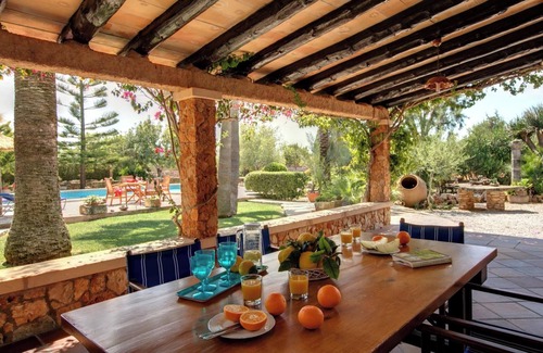 Bordered by an almond grove, the swimming pool faces in a sunny south-easterly direction and is surrounded by a delightful garden featuring various mature trees, shrubs and flowers that burst into colour over the summer. Conveniently alongside, a covered terrace provides shade for the warmer times of the day and is a lovely spot for al fresco dining.
