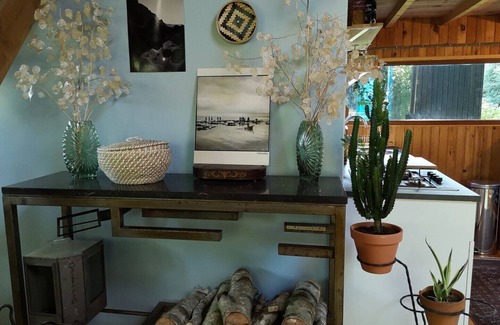 Old refurbished photo studio, the house offers a high ceiling and a skylight. It is located next to our main house in the middle of a plot of 6500m2, we share access and parking. The decor is vintage, ethnic and bohemian and offers the spectacle of nature in large format. Barbecue in the sun or lunch under the skylight, the house is as pleasant inside as outside. Particularly suitable for dreamers, artists and travelers, tired of sanitized rentals ...