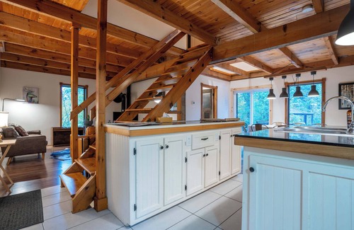 At the Chic Chalet des Chutes for comfort, privacy and rest in the middle of the forest with no neighbors, a stone's throw from Chutes Mont-à-peine and Les Dalles.
