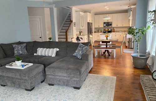 Welcome ANWA and Masters Tournament guests and visitors! Situated on a quiet street in Riverwood Plantation, home to the Champions Retreat Golf Club, our lovely 4 bedroom, 3.5 bath home is a quick, 3.5 mile (10 min.) drive to Champions Retreat and just 30 minutes to Augusta National Golf Club. This newer home has an open concept, eat-in kitchen with pantry and an adjacent living room with gas fireplace and large sectional, and separate dining room. Relax in our private backyard on the covered patio with tv off the kitchen or in the rockers on the front porch on our peaceful street. The second floor consists of the following: