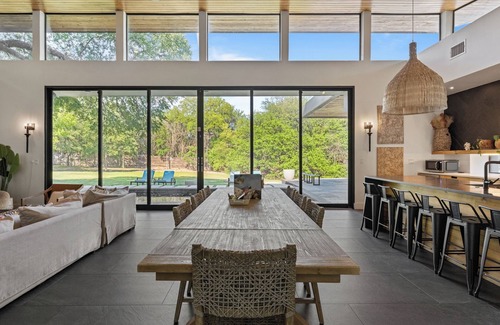 Welcome to Wander Austin Grove, a stylish oasis just 15 minutes from downtown Austin that blends modern luxury with laid-back charm. Surrounded by lush trees, this serene retreat invites you to unwind in a hammock, take a soak in the private outdoor tub and shower, or cool off in the sparkling pool. Enjoy evenings gathered around the fire pit, savor meals on the covered patio with a full outdoor kitchen and BBQ grill, or play lawn games under the Texas sky. With cozy lounge spaces and thoughtful amenities throughout, Wander Austin Grove offers a uniquely immersive Austin experience—perfect for both relaxation and connection.