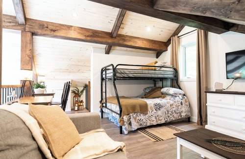 Located in Lac-Etchemin, this 4-bedroom, 2-bathroom chalet lets you experience it all. Fans of nature and the outdoors will love being 8 minutes by car from Eco-Parc des Etchemins and 41 minutes from Seven Falls Park. If you'd like to explore the area, you can make the 15-minute drive to Mont Orignal or the 4-minute drive to Moulin La Lorraine.