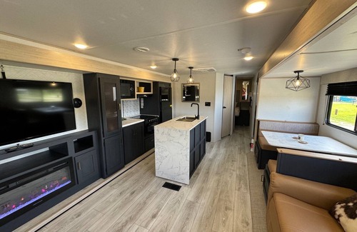 Come stay at our cozy camper located conventiently betweeen the Texas Eclipse Festival and Canyan of the Eagles. Conveniently located across from the Burnet County Park and Boat Ramp at Buchanan Shores RV Park, and 12 miles from Downtown Burnet. Our little spot is a great place for you to find a getaway from the noise and sleep in a cozy quiet spot while still being close to all the action!