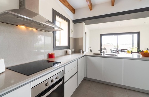 Situated in the vast Mallorcan countryside, this house combines simple elegance with rustic wooden elements. The light-flooded living area invites you to chat over an aromatic espresso, an afternoon of games or a film night. In the modern kitchen, you can prepare delicious meals together and give free rein to your creativity. Serve a good Spanish wine and enjoy unforgettable evenings in a stylish ambience.