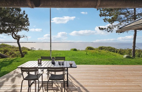 Spend a wonderful vacation at Dalby Bay and in this cozy cottage decorated in light colors. The lovely decoration, good furnishings and the wood-burning stove create a wonderful atmosphere that makes it easy for you to relax. Look out from the living room to the sea, because here you will find yourself in a very rare location, directly on the beach. Enjoy the fantastic beachfront property where you can enjoy the beautiful sunsets. The modern and beautiful wooden terrace invites you to barbecue evenings.