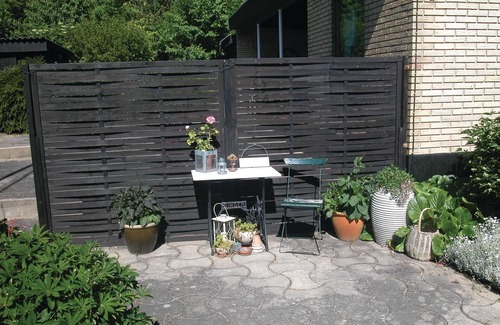 This vacation home is located on the owner's property and in a quiet area. Here you have a view of well-kept garden areas where you can watch deer in the garden, as the property is located near wooded areas on the outskirts of Rønne. Inside you have a nice kitchen with dining area and a cozy combined dining and living room with access to the covered and open terrace.