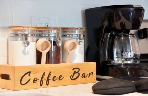 *The kitchen is fully stocked with a 4-burner stove, microwave, oven, fridge & freezer, mixing bowls, cooking spray, salt & pepper, knife set, cutting boards, can openers, baking trays, and a full coffee corner - including sugar, cream and coffee.