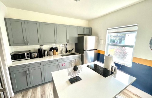 This recently upgraded 2/1 unit is beautifully decorated in iconic Bahamian National colors and is perfect for families, friends, or people in town for work or a temporary relocation! It comes with a private enclosed backyard complete with patio furniture and your very own private hot tub, plus a communal courtyard shared among guests that boasts a BBQ grill, hammock, fire pit, and picnic table. The ideal combination of amenities and luxury, make this the perfect home away from home for your next stay in Fort Lauderdale!