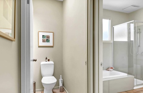 ‘Banksia Beach House’ features three comfortable bedrooms, master with ensuite, light filled spacious living room, well-appointed kitchen and a second lounge with fireplace for those colder Victorian nights. The property can be easily zoned with clever design allowing you to close off the front, mid and rear of house. The master bedroom is located at the very rear of the house whilst the other two bedrooms are at the front of the house and serviced by the main bathroom with shower, bath, vanity and separate toilet