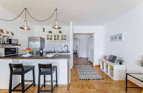 After a day brimming with adventuring, you can unwind in our intimately designed living room. Furnished with a TV, Game Console, and a dedicated workspace, this space provides a realm of relaxation. The living area effortlessly extends into a private terrace, your personal outdoor lounge, perfect for soaking in Spain's balmy breezes. Children can delve into an array of toys, board games, and books, ensuring joyous times.