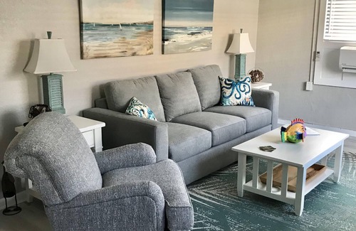 If you are looking for a relaxing stay on the coast you have found your spot! Lovely one bedroom ground floor unit just 200 ft from the beach a great place for surfing, fishing, swimming and sunbathing. Courtyard style heated pool for privacy and relaxation just outside your door. Located walking distance to all the great shops and restaurants in beautiful Flagler Beach. One bedroom with full kitchen and living room nicely appointed.