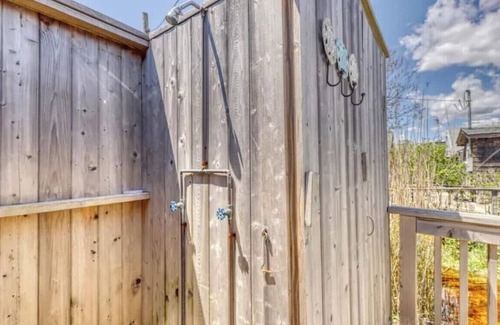 There is an enormous wraparound outdoor patio. Lots of seating options, a propane grill, and two outdoor showers.