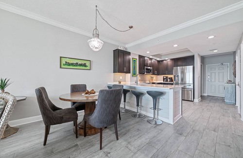 Welcome to Your Luxurious Getaway at Crystal Shores, Gulf Shores, Alabama! Discover paradise on the top floor in this exquisite 2 BD | 2 BTH condo, designed to offer you and your loved ones a memorable beach retreat. Sleeping 6 guests, this stunning condo is adorned with the finest furnishings and boasts an array of amenities to ensure a truly memorable vacation experience. Relax and unwind in the spacious living area, thoughtfully adorned with modern furnishings, offering a perfect space for family time or simply lounge after a day of beach adventures. Enjoy home-cooked meals in the well-appointed kitchen, equipped with modern appliances, and gather around the dining table to create cherished memories. The expansive balcony, overlooking the Gulf stretches the entire length of the condo with floor to ceiling window views. Take in the stunning sights of Gulf Shores and relish the soothing sea breeze, making your stay an unforgettable experience Be sure to indulge in the resort amenities-an indoor and outdoor pool, fitness center and hot tub and sauna. This condo provides easy access to the area's attractions, including pristine beaches, renowned dining spots, and a variety of activities suitable for all ages. Book your stay now and create lasting beach getaway memories!