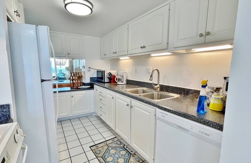 Highlights of this condo include a private balcony with delightful oceanfront views, floor-to-ceiling windows in the living room and primary bedroom, a well-appointed kitchen with a breakfast bar, and a dining area for four. Beach towels, a private washer/dryer, three TVs, and free WiFi are provided as well.