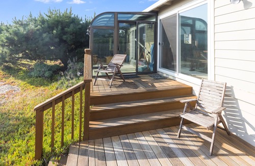This family friendly 3 Bedroom, 2 bath oceanfront house has everything you could want for a relaxed holiday at Stinson Beach. The open plan consists of the living room, sun room, dining room, and galley kitchen, and is perfect for relaxing as a group. There is a large built in desk that is perfect for working from home. The living room has gas fireplace and satellite TV. Outdoors there is a private brick patio, and two decks that lead to the sand. Gas Grill and outdoor shower. Bed Configuration: 2 Cal Kings, and 1 Queen.
