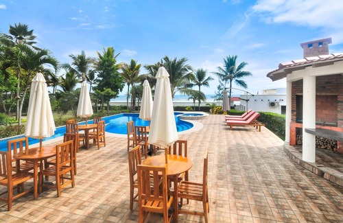 Elegant property featuring 5000 square meters of well groomed gardens and fruit trees oceanfront. Property has two pools and a spa. Nicest property in the area. We also provide 24 hour security, air conditioning and WiFi. The beach in front of the property is big and quiet. Walk 10 minutes down the beach if you want populated. The property has 4 guest houses. Boat house sleeps 4, Lower and upper poolside houses sleep 2, cottage sleeps 2 with a Queen bed. The property has an outdoor kitchen and BBQ. Breakfast is served daily and included in the price. Each house is rented and priced separately.