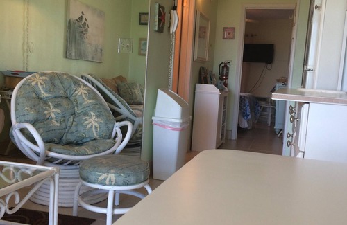 Beacher's Lodge has been a featured destination for vacationers to the First Coast since 1987. Suite 116 is located on the first floor with a ramp or stair access. Free parking allows you easy access to your automobile freeing you to explore Historic St. Augustine just 10 miles north. The private patio is the perfect contemplative space to sip coffee in the morning or cocktails in the evening. Unobstructed sunrises will greet you every morning. Ocean breezes will relax you each evening as you soak in the salt air. The bedroom is furnished with a queen-size bed and linens. The bath is outfitted with towels. And the kitchen is equipped with the essentials for a breakfast or lunch on the beach. Steps away from the South Beach Grill, Tony's Pizza, and O'Loughlin's Pub, you can easily avoid both cooking and driving. Lots of great dining is a short drive away in Historic St Augustine. This suite is most comfortable for two.
