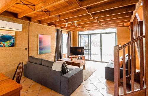 Beachy Sleeps is a beautiful, rammed earth two story chalet style house nestled within the Margaret River Sea Escape Property. Situated just a two minute stroll (5 houses back) from the renowned Gnarabup Beach and a ten minute drive to the heart of Margaret River, this retreat is designed to elevate your family vacation experience.