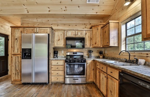 Fully equipped kitchen: Refrigerator, stove, oven, microwave, dishwasher, toaster, coffee maker, dishes, glassware, utensils, cutlery, pots, and pans. Linens for each bed, 2-bath towels, 1-hand towel, 1 washcloth per person listed on the guest list, dresser or closet for clothing storage, central heat & air, washer/dryer, vacuum and/or broom and dustpan, mop, internet, and propane gas grill. In addition, we provide a complimentary start-up supply of Toilet Tissue (1 roll per bathroom), 1- roll of paper towels, 4- kitchen garbage bags, dishwasher detergent, dishwashing liquid, and laundry detergent for at least 2 loads. Many of our cabins include more than this basic list of inventory items. The only items you'll need to bring will be food, beverages, and condiments.