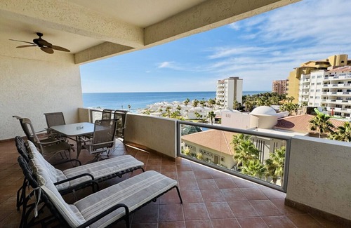 Welcome to your perfect home-away-from-home on the 5th floor, featuring breathtaking, unobstructed views of the beautiful Sea of Cortez. This newly furnished and tastefully decorated condo offers spacious comfort with two king bedrooms, each boasting a private master bathroom and premium Tempurpedic mattresses for restful nights.