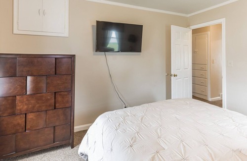 Hang out and watch the big game with your friends and family comfortably in the living room with ample space to relax on the sofa or the reclining seat. Enjoy a Smart TV allowing access to all of your favorite streaming services. The kitchen comes fully stocked with common appliances, cookware, and utensils. Enjoy a cup of coffee in the morning with a Keurig coffee maker. Have a seat at the large dining table to enjoy your meal, which has up to 6 seats.