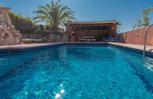 Beautiful and cozy old cortijo - a once-typical Andalusian country home. Perfect for families with children, for couples and for groups of friends. The swimming pool has stunning views of the Sierra Cabrera mountains and Mojácar village, a large covered porch with bar and plenty of room for eating and sunbathing. A covered terrace with views of the sea and the village. Inner patio with central palm tree. Two double bedrooms, one with three beds and another with four (perfect for kids). Three bathrooms, with one en suite. Large kitchen/dining room.. A well-established garden, with palms, olive trees and impressive cactuses. TV (Spanish and British) and internet. Ample private parking. In a quiet area between the sea and the village, but only five minutes' walk from the shore. Mojácar is a beautiful village with over 10 miles of coastline, busy beaches with excellent beach bars/restaurants and empty beaches for those looking for peace and quiet. A well-established international community.