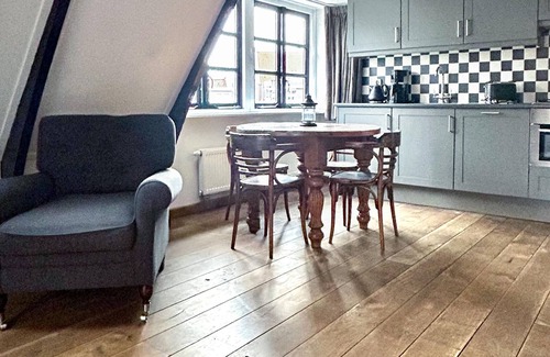 Spend a relaxing break in this charming holiday apartment in an idyllic location in North Holland. Enjoy the ideal combination of cosy living comfort and a spacious outdoor terrace with a magnificent view of the village rooftops. Enter the stylishly furnished living area with its warm wooden look and open beams. Settle down on the comfortable seating and relax after an eventful day. Use the practical kitchen to prepare delicious meals. The cosy dining area in front invites you to spend evenings together.