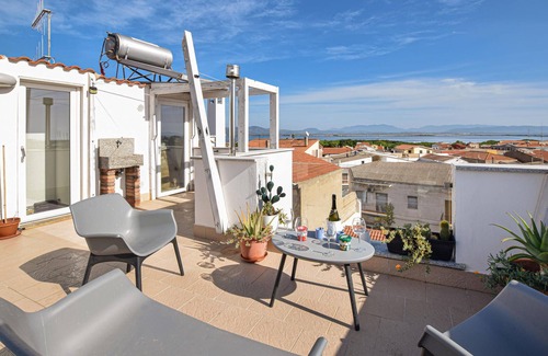 Enjoy a beautiful sea view from your rooftop terrace on the island of Sant'Antioco.
