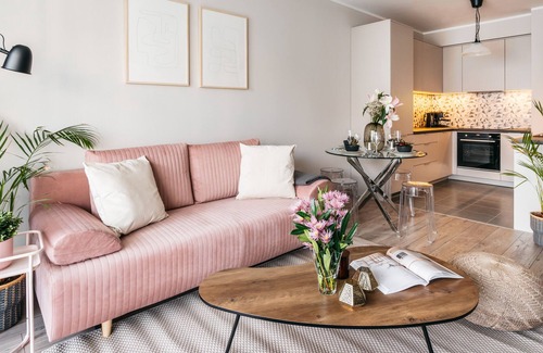 This bright and stylish apartment is intended for 4 people and located in vicinity of Vistula Boulevards and leisure areas.