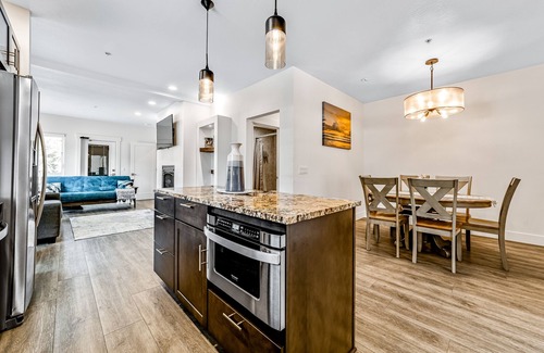These two-bedroom, two-bathroom apartments are located less than a mile (three minutes) away from the ocean and are ready to welcome you and your family! Gather with everyone around the gas fireplaces and stream a favorite shows on the smart TVs with streaming services - there is no need to miss your favorite shows anymore! There is no Netflix marathon without snacks and the fully appointed kitchens have your back with modern stainless steel appliances. Find a full-size fridge, stove, oven, dishwasher, coffee maker, and more.
