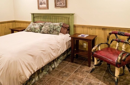 The main cabin on the property offers a spacious game room which includes a pool table, large TV with satellite and an X-Box Connect. There is a dinning/meeting area in the main cabin with smart board technology, an indoor and/or outdoor bar space, half bath and seating large enough for approximately 35 people. A large industrial kitchen compliments the main cabin with state of the art appliances.