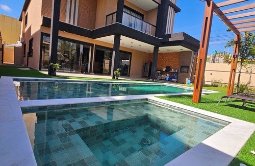 Located in Camaçari, this 6-bedroom, 6.5-bathroom vacation home lets you experience it all. Fans of nature and the outdoors will love being 11 minutes by car from Guarajuba Beach and 29 minutes from Praia do Forte Beach. You'll easily make the 13-minute drive to Barra do Jacuipe Beach or the 22-minute drive to Arembepe Beach.
