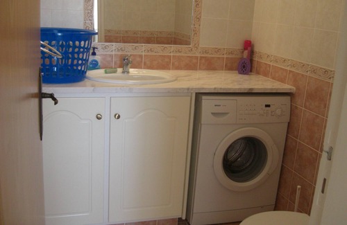 There is also a utility/ toilet room where the washing machine is located at the base of the stairs.