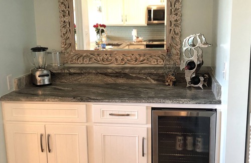 The unit is fully outfitted to ensure your comfort and reduce your need to over pack. Items include traditional coffee maker, Keurig, blender, 4 slice toaster, cookware, etc. There is also a bar area with beverage refrigerator, a full size washer and dryer and deck furniture. Linens are included with your rental (sheets and towels) as well as a pack-n-play, booster seat, games and puzzles. We also have a few beach chairs, umbrella, and floats for your convenience. So all you have to bring is your bathing suit!